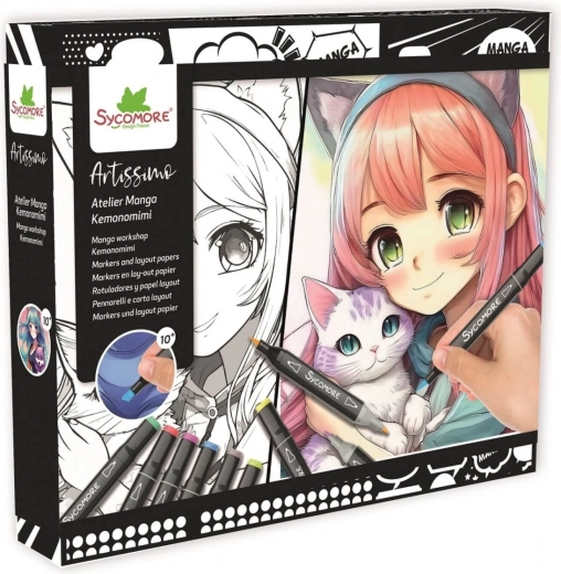 Objevte zábavný kreativní box pro mladé ilustrátory od 10 let, který je inspirován stylem manga. Sada nabízí 10 předtištěných layout papírů, 10 lihových fixů se dvěma hroty a návod pro snadné začátky. Díky hladkému papíru a sytým barvám vzniknou precizní kresby stylu Manga s motivem kemonomimi – lidských postav se zvířecími rysy.