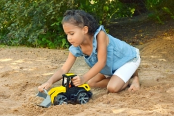 Snadno ovladatelná lžíce podporuje motoriku a realistickou stavební hru – nabírejte, přemísťujte a vyklápějte materiál.