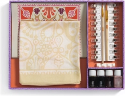 Tato kompletní sada pro malování na hedvábí od značky DJECO přináší vše, co potřebujete k tvorbě unikátního šátku s elegantními květinovými a geometrickými motivy. Díky pevnému napnutí látky a vodivým liniím se barvy krásně rozlévají a začátečníci snadno dosáhnou profesionálního vzhledu.