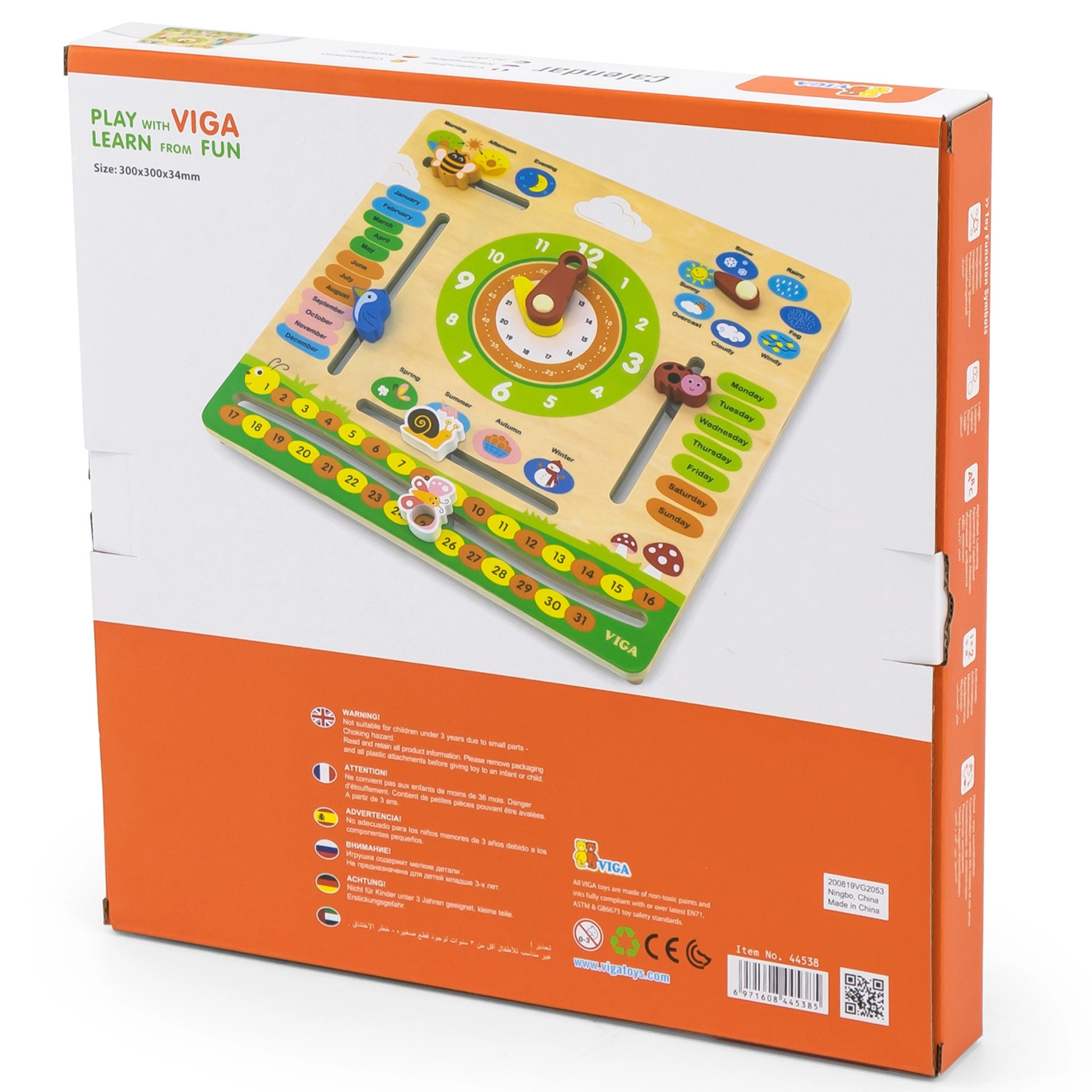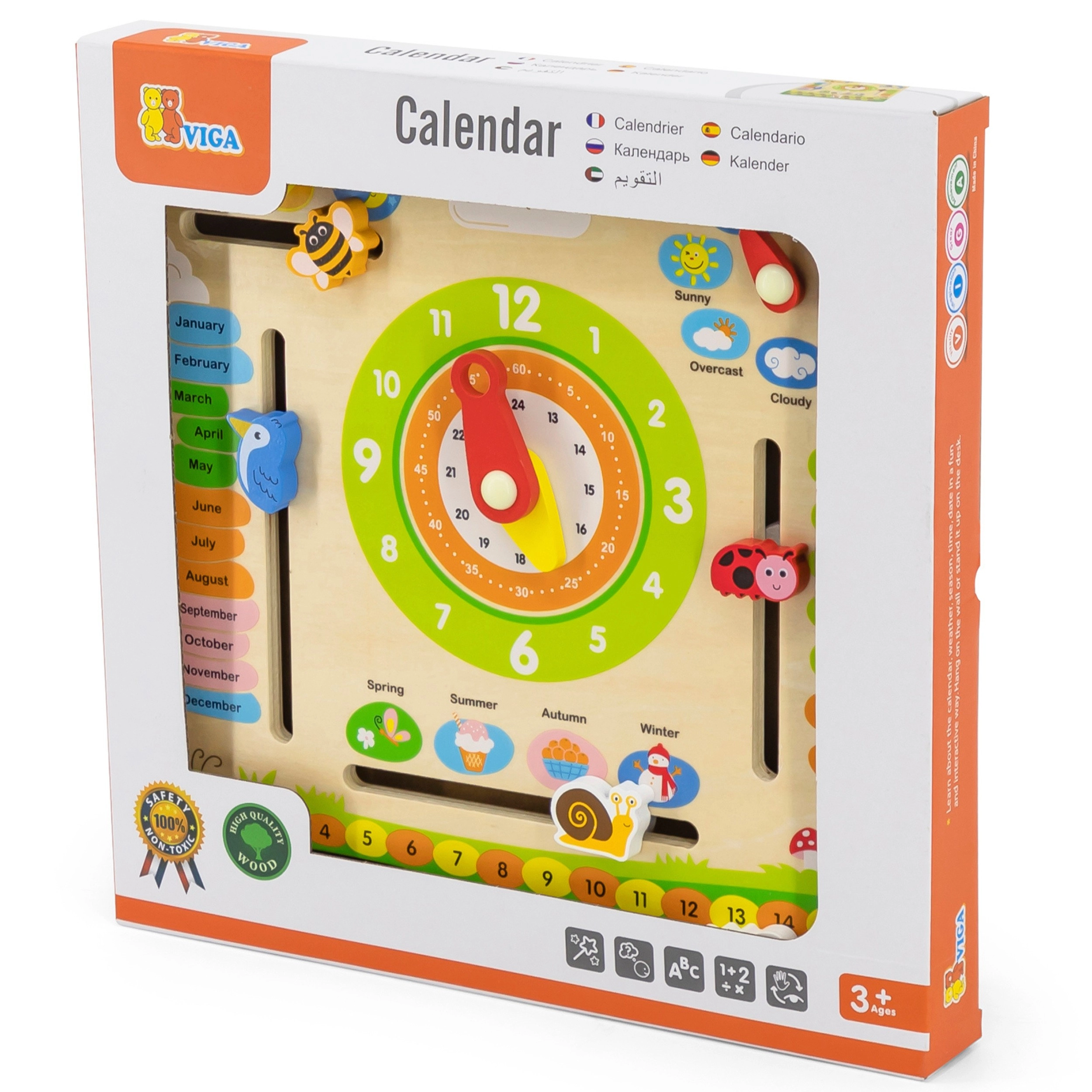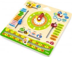 Objevujte čas, dny, měsíce a počasí s dřevěným výukovým kalendářem s hodinami od Viga. Tento kvalitní, bezpečný a barevný pomocník podporuje učení angličtiny, nácvik čtení času na analogových hodinách a rozvoj logiky i jemné motoriky. Skvělý doplněk pro domov, školku i školu a vhodný pro Montessori přístup.