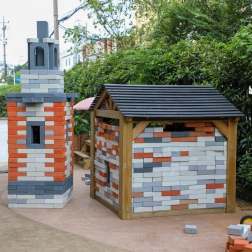 Hra s cihličkami podporuje jemnou motoriku, tvořivost, fantazii, prostorovou představivost a trpělivost. Sada je skvělým doplňkem k dětským domkům či altánkům a díky odolnému provedení se hodí i na zahradu nebo hřiště. Domek není součástí balení.