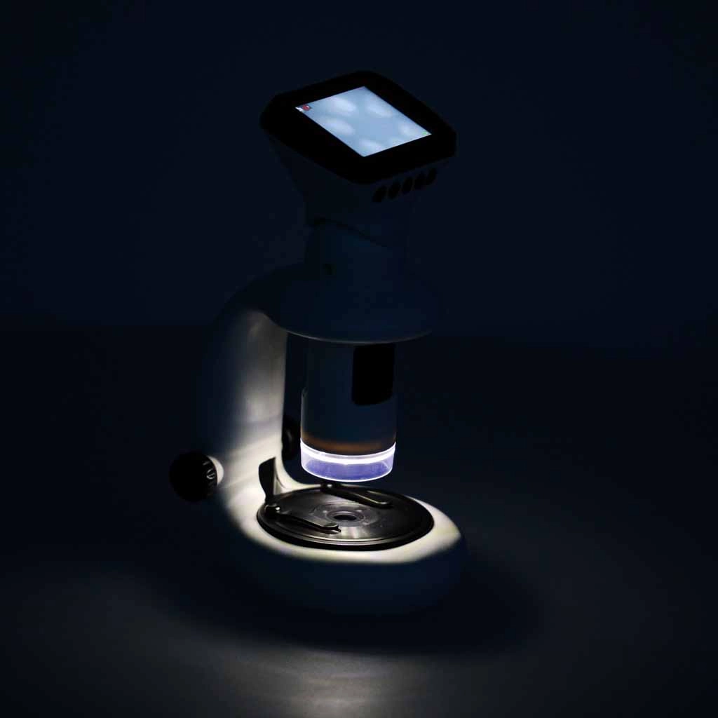 Tři režimy 3v1 rozšiřují použití: stolní režim pro stabilní práci, ruční režim s odpojitelným displejem pro pozorování kdekoliv a možnost sledovat pevné vzorky i kapaliny. Součástí je sada laboratorních nástrojů pro přípravu vzorků a hotové ukázkové preparáty.