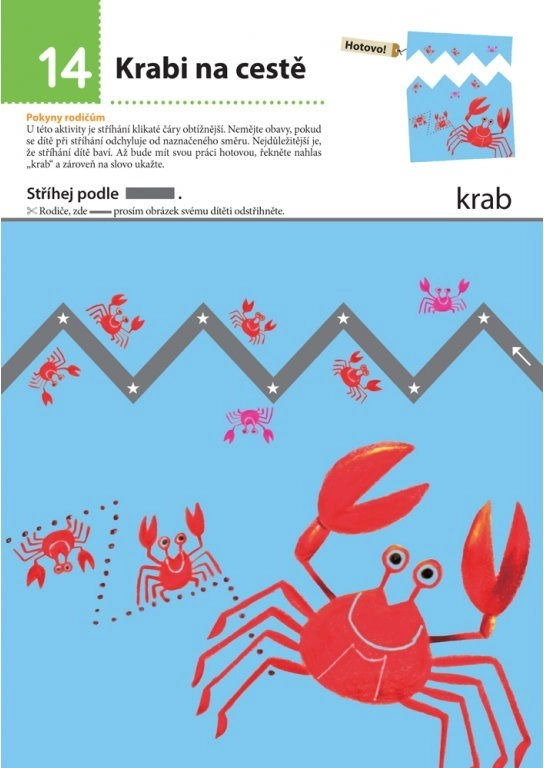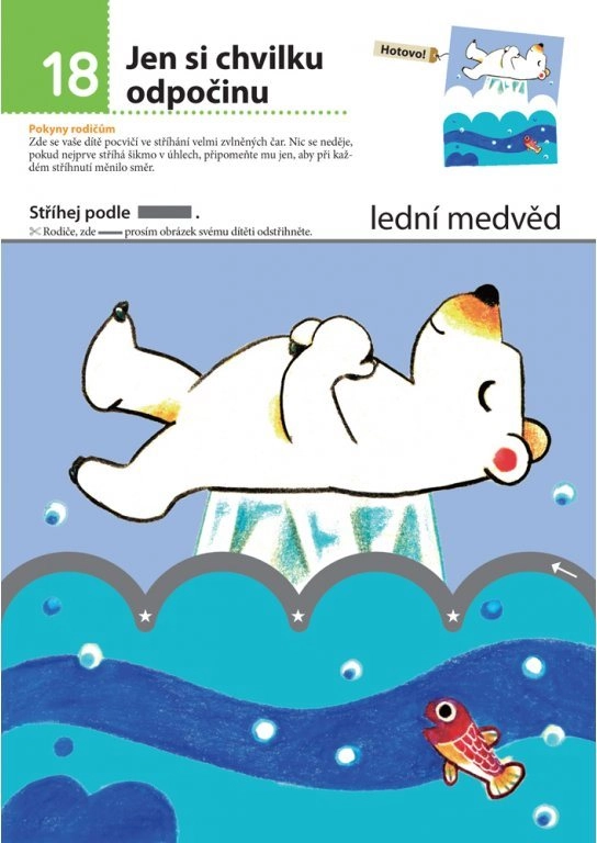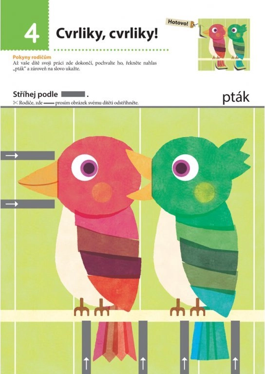 Tento sešit navazuje na první díl Stříhej papír! a přináší o něco náročnější úkoly. Dítě si díky promyšlené metodice KUMON krok za krokem posílí prsty, zlepší koordinaci ruky a oka a naučí se stříhat přesně dle vyznačených linií. Témata se zvířaty udržují pozornost a motivují k dokončování úloh.