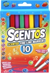 Voňavé tenké fixy SCENTOS 10 ks přinášejí spojení přesnosti, intenzivních barev a zábavného ovocného aroma. Jemný hrot umožňuje kreslit tenké i výraznější linky, takže jsou skvělé pro poznámky, detailní ilustrace i vybarvování. Klasické bílé tělo s barevnými prvky a logem SCENTOS zaujme na první pohled.
