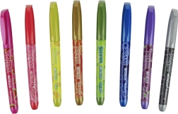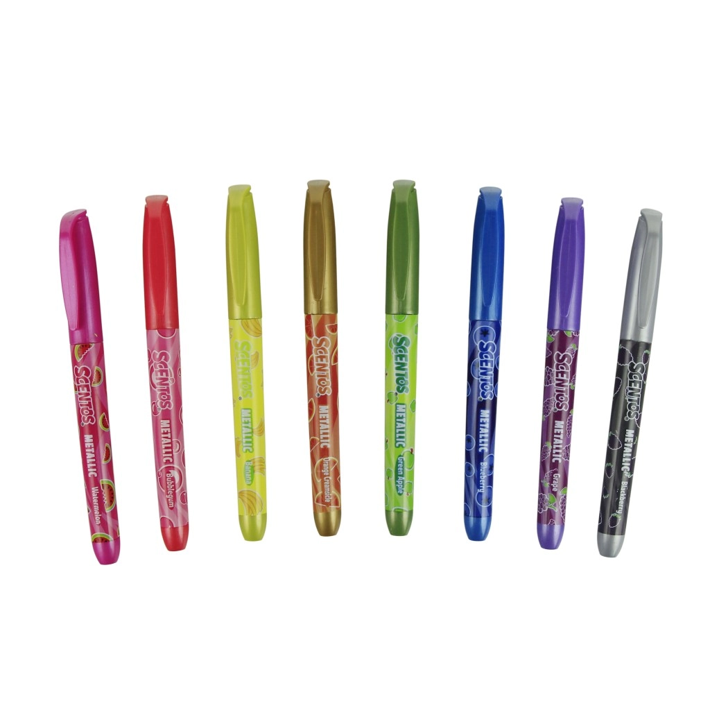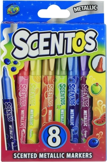 Vylaďte své projekty s metalickými fixy SCENTOS, které spojují intenzivní barvy, třpytivý lesk a příjemné ovocné vůně. Každý fix má barevné tělo odpovídající odstínu, takže ihned sáhnete po správné barvě. Metalický pigment krásně vynikne zejména na tmavých papírech a dodá výtvorům elegantní efekt.
