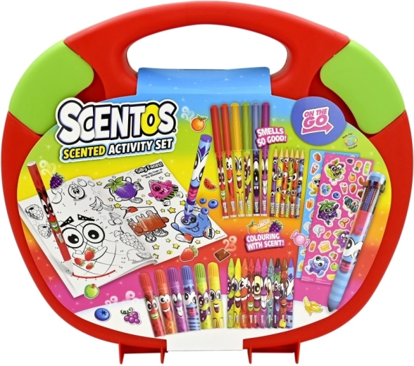 Voňavý kreativní kufřík Scentos je skvělou volbou pro děti, které milují barvy, vůně a tvoření. Kompaktní červený kufřík se zelenými úchyty je snadno přenosný, má praktickou rukojeť a bezpečný uzávěr, takže všechny pomůcky zůstanou hezky pohromadě.