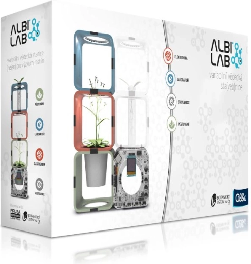 AlbiLAB je moderní vědecká stavebnice, která propojuje botaniku, elektroniku a praktické experimenty. Díky magnetickým kostkám a modulární konstrukci rychle postavíte vlastní pěstební komory a s pomocí programovatelných prvků sledujete růst a reakce rostlin v reálném čase. Sada je vyvinuta ve spolupráci s Botanickým ústavem AV ČR a Prusa Research, takže se můžete spolehnout na kvalitní obsah i precizní zpracování.