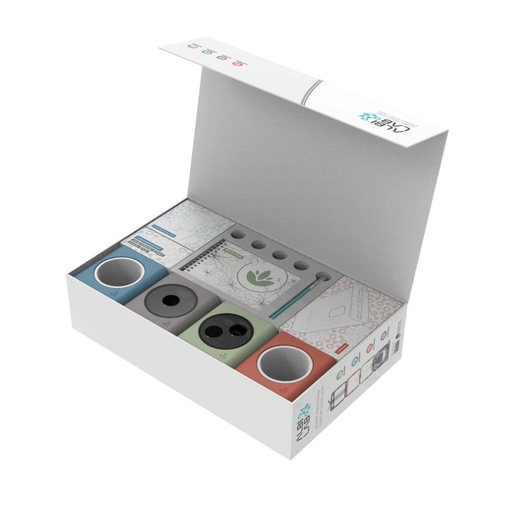 - Magnetická kostka – pěstební komora pro rostliny (4×), pěstební nádoba (2×), semínka Huseníčku rolního, substrát, zeolit