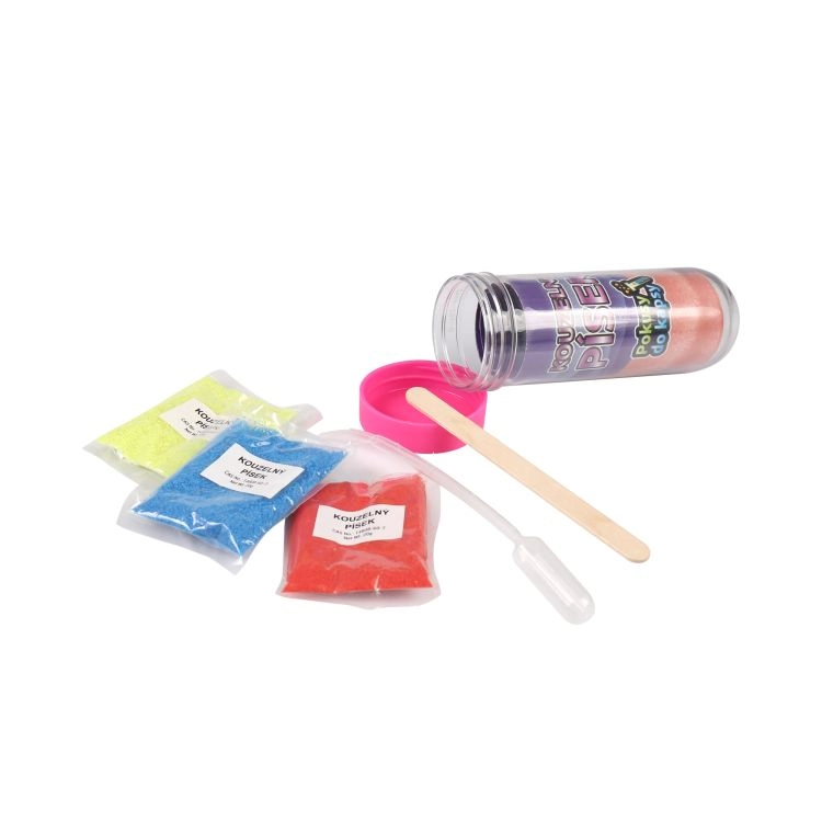 - 3 pytlíky kouzelného písku (3 barvy), míchací tyčinka, kapátko