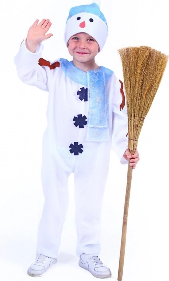 Fantastický vícedílný kostým, díky kterému se každé dítě bude cítit jako skutečný sněhulák. Úchvatný dětským kostým sněhuláka propracovaný do nejmenších detailů. Součástí kostýmu je bílý overal s vločkami, modro-bílá čepice a modrá šála s potiskem stříbrných vloček.