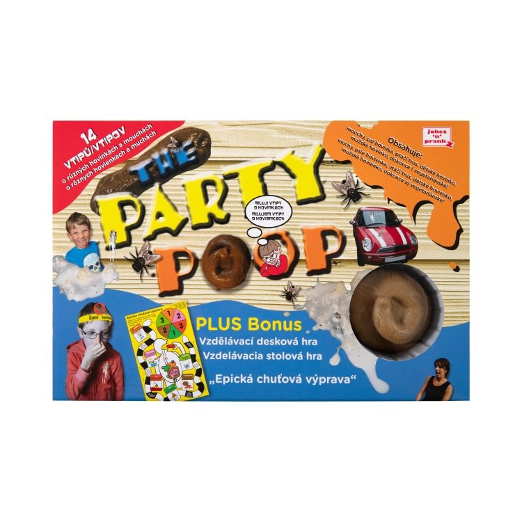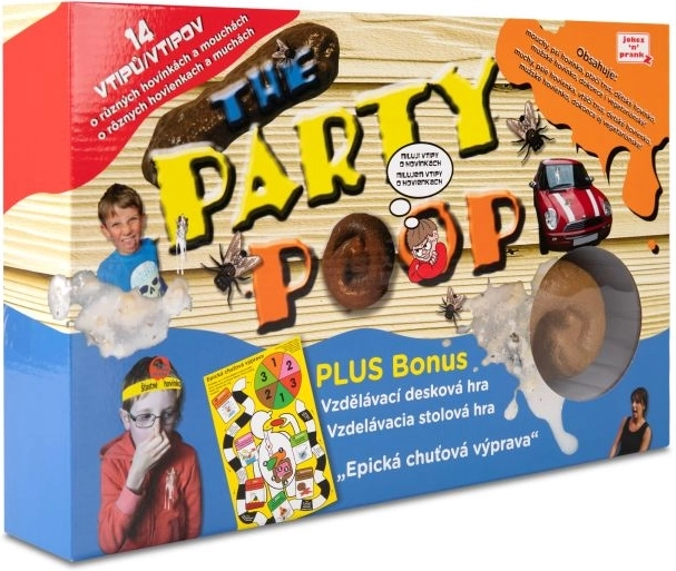 Objevte set, který rozproudí každou rodinnou i dětskou párty. Čeká vás sbírka 14 vtipů inspirovaných různými typy hovínek a mušek a k tomu bonusová desková hra „Epická chuťová výprava“ pro týmovou zábavu a nenápadné učení. Ideální na oslavy, výlety i pohodová odpoledne.