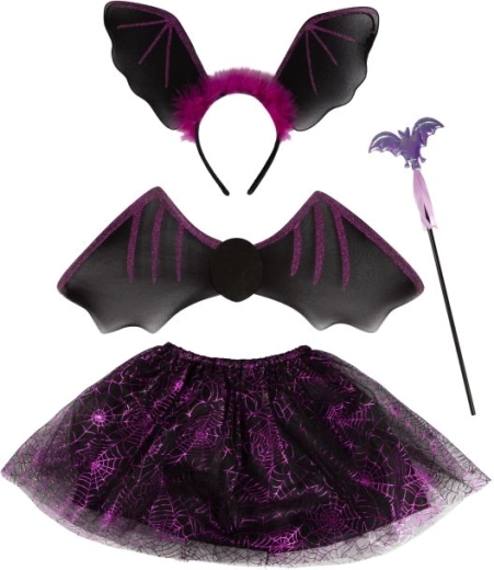 Vytvořte dětem nezapomenutelný kostým s tímto setem netopýra ve velikosti 3–4 roky. Obsahuje čelenku, hůlku, křídla a sukni z lehkého materiálu, ideální na karneval, Halloween i tematické párty. Vyrobeno ze snadno udržovatelného 100% polyesteru.