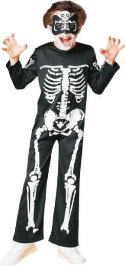 Proměňte svého malého rošťáka v neodolatelné strašidlo. Tento dětský kostým kostry nabízí výrazný potisk celého těla a jednoduché doplnění o přiloženou masku na oči. Skvěle se hodí na Halloween, školní karneval i domácí tematické oslavy.