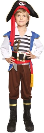 Stylový dětský pirátský kostým pro chlapce ve věku 7–9 let je ideální na karneval, tématické párty i domácí hry. Obsahuje vše, co malý pirát potřebuje – od klobouku až po meč. Díky materiálu z 100% polyesteru je kostým lehké údržby a pohodlný na nošení. Balení je bohaté na doplňky pro autentický pirátský vzhled.