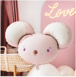 Oživte svou oslavu stylovým fóliovým balónkem ve tvaru myšky s roztomilou mašličkou. Růžové ladění se hodí pro vítání miminka, baby shower i dětské narozeniny. Díky kvalitní fólii balónek vydrží déle nafouknutý a potěší malé i velké hosty.