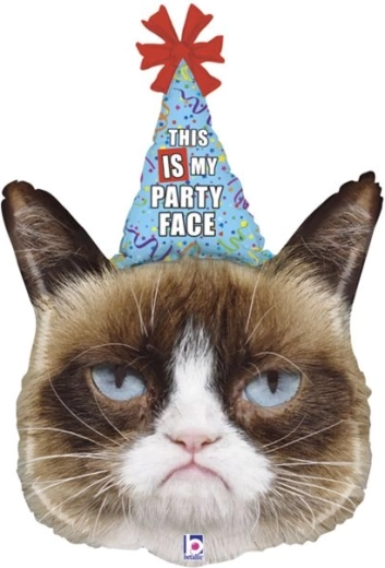Zpestřete oslavu originální dekorací – fóliovým balónkem ve tvaru mrzuté kočičky s nápisem „This is my party face“. Tento balónek z pevné fólie je odolný, snadno se nafukuje a hodí se na narozeniny i tematické párty. Lze jej nafukovat vzduchem i heliem, má velikost 74 cm a dodá vaší výzdobě vtipný a výrazný prvek.