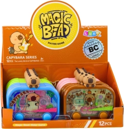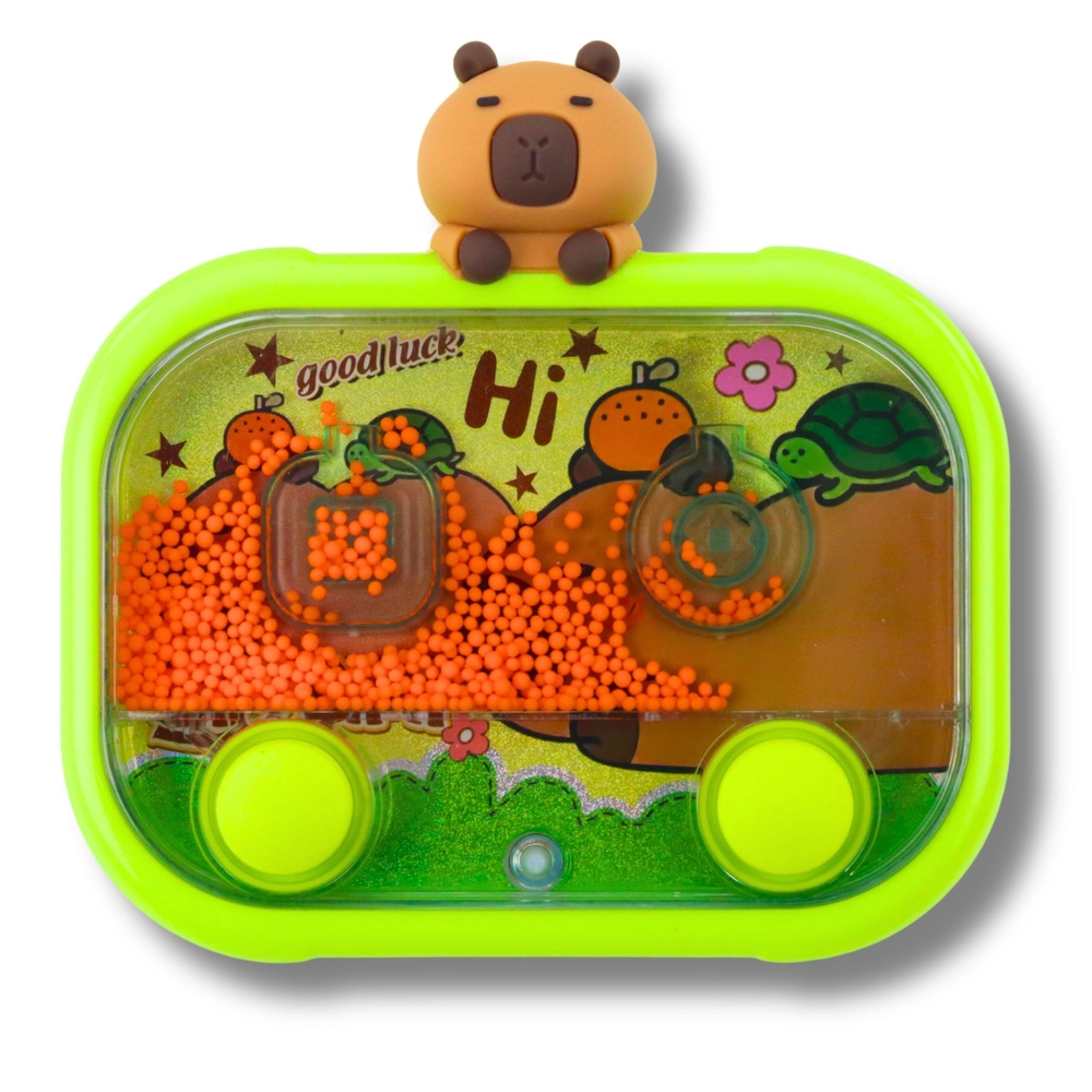 Objevte kouzlo klasické vodní hry v novém, barevném provedení s motivem kapybary. Hra funguje mechanicky – stačí mačkat tlačítka, rozpohybovat proud vody a přesně navést kuličky do úchytů. Podsvícení aktivované stiskem kapybary rozsvítí vnitřek hračky a promění hraní v ještě atraktivnější zážitek, zejména v šeru.