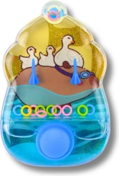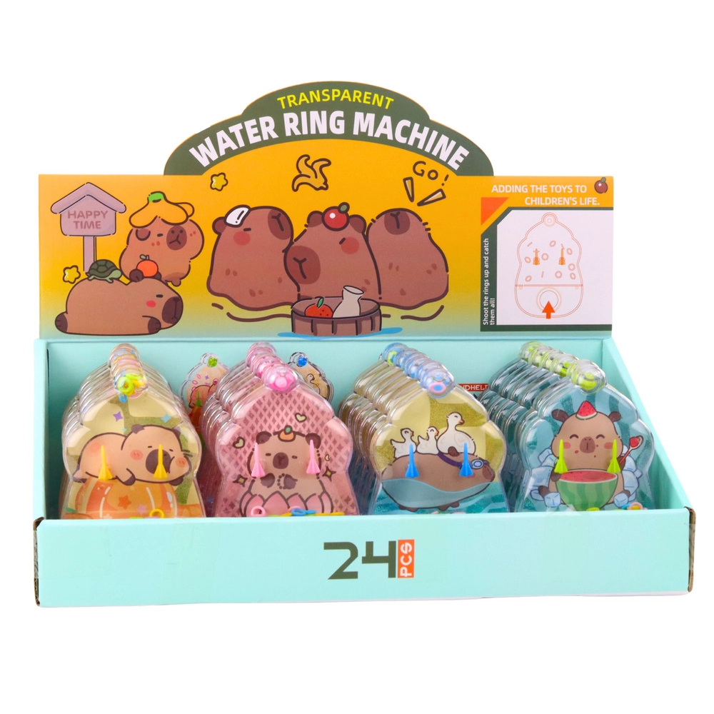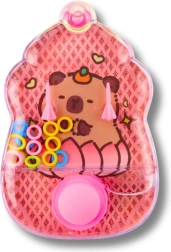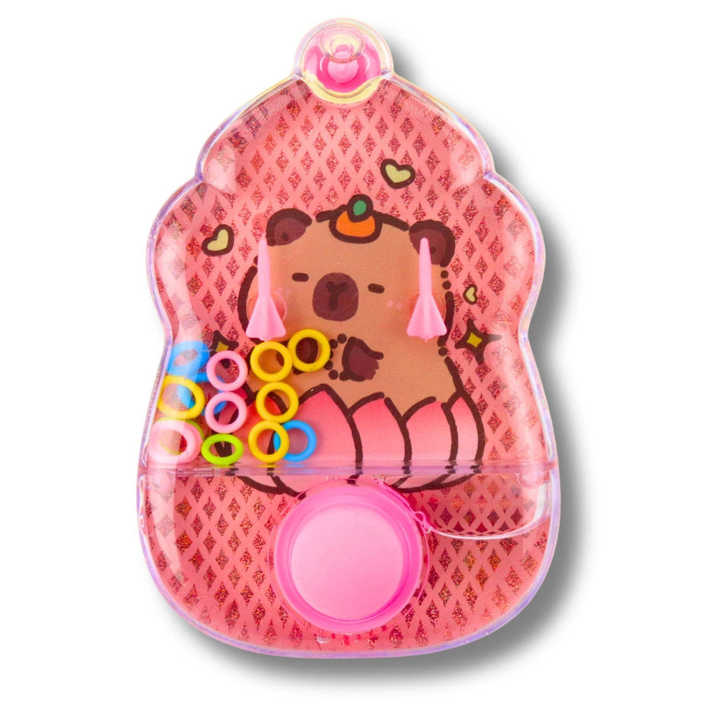 Zábavná a nadčasová vodní hra s motivem kapybary, která rozvíjí zručnost, trpělivost a koordinaci oko–ruka. Stačí stisknout tlačítka, uvést vodu do pohybu a nasměrovat barevná kroužky na kužely uvnitř průhledného pouzdra. Hra je zcela bez baterií, má roztomilý tvar zmrzliny a je dostupná v barevném mixu – ideální na cesty, do školy i na doma.