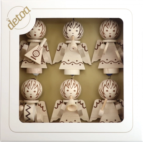 Dřevěné vánoční ozdoby Detoa s motivem andělíčků hrajících na hudební nástroje dodají stromku i interiéru tradiční a hřejivou atmosféru. Díky přírodnímu materiálu zapadnou do klasické i moderní výzdoby a stanou se oblíbeným detailem vaší sváteční dekorace.