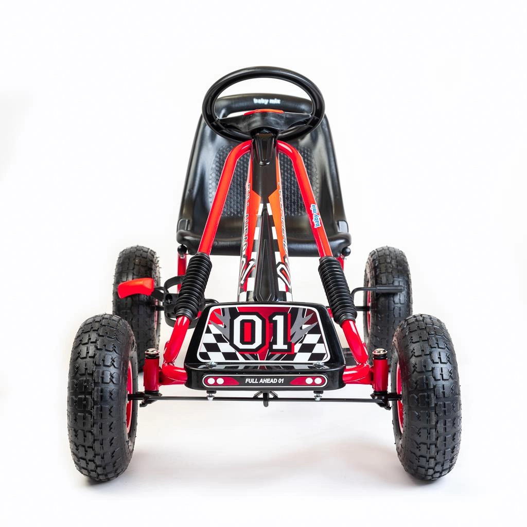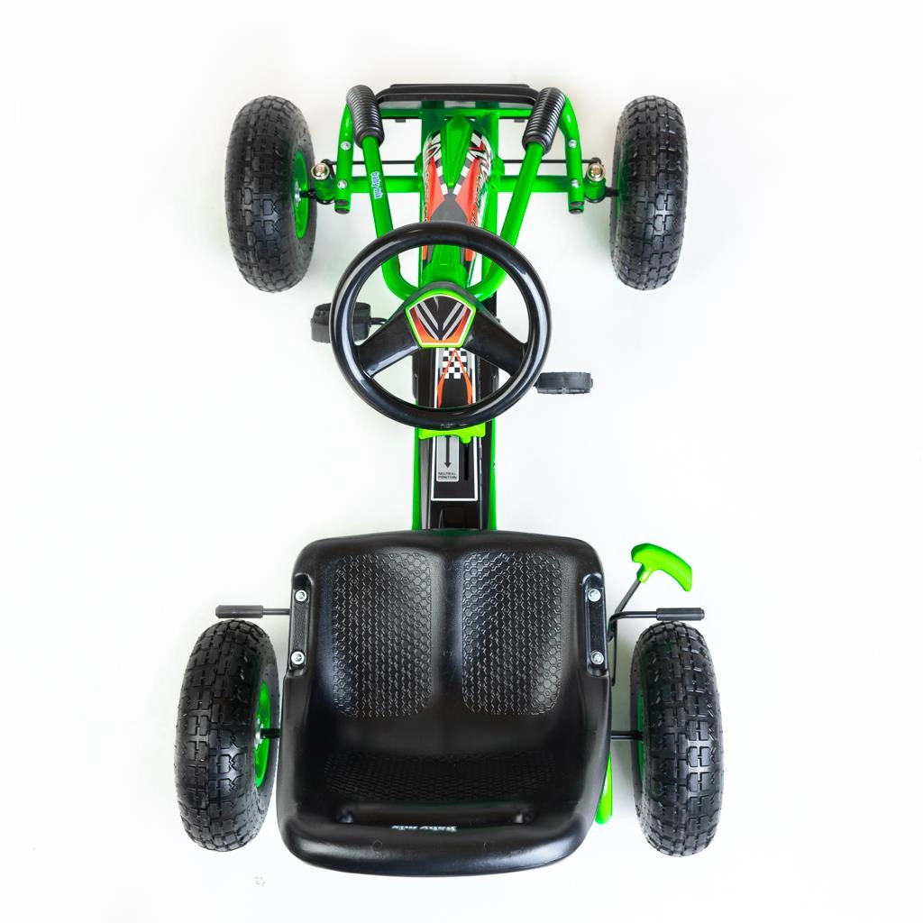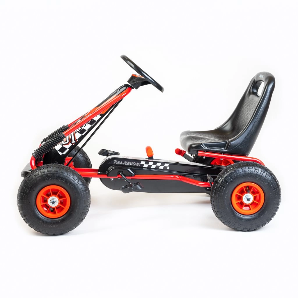Bezpečnost je na prvním místě: ruční brzda působí na obě zadní kola, řetěz je krytý a převodovka nabídne režimy vpřed/vzad a volnoběh. Motokára splňuje evropské bezpečnostní normy a díky odolnému provedení zvládne každodenní dobrodružství na zahradě i na hřišti.