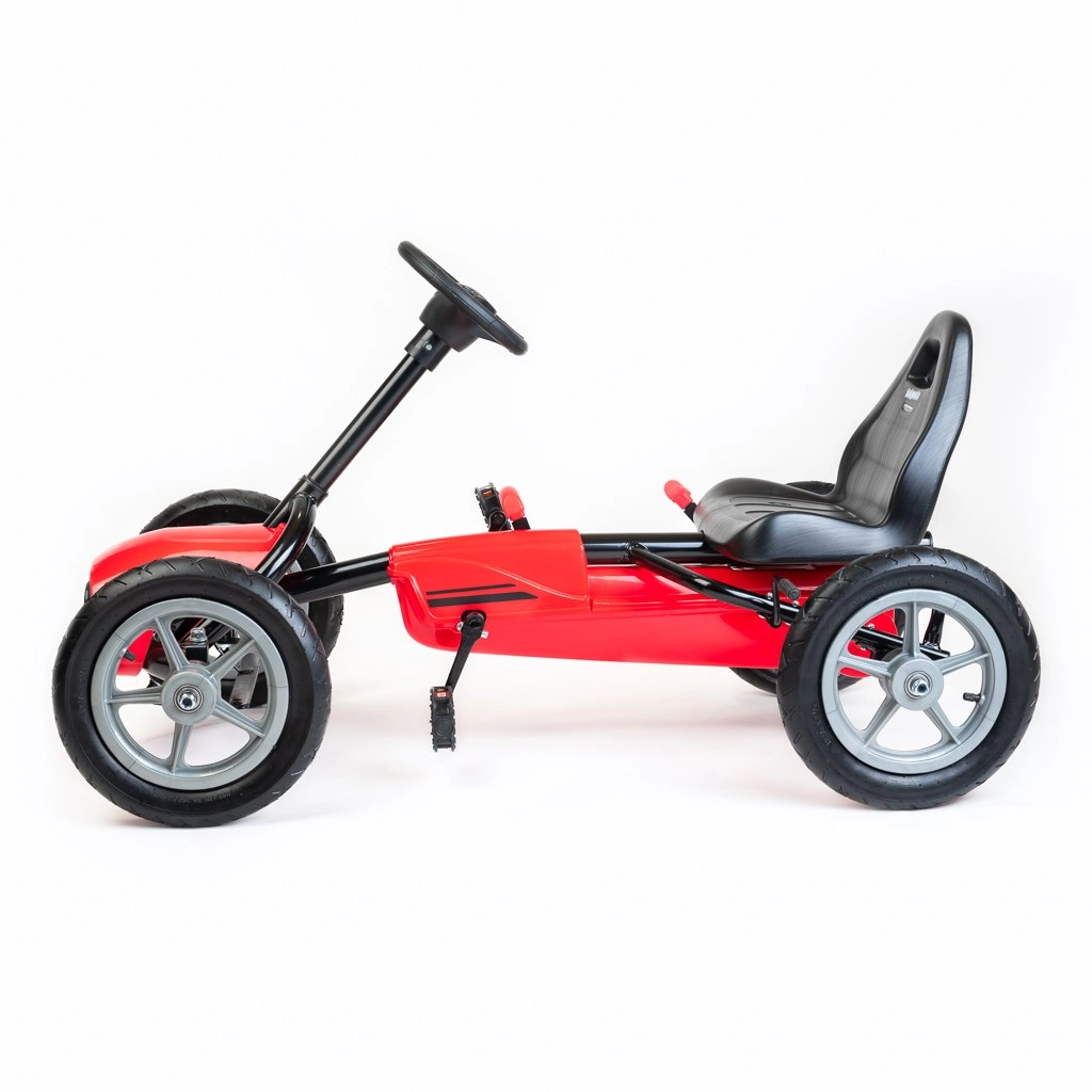 Šlapací motokára BABY MIX Buggy je skvělým společníkem pro děti, které milují pohyb a volnočasové aktivity venku. Ergonomické sedadlo se dvěma stupni nastavení vzdálenosti od volantu zajišťuje pohodlí, zatímco stabilní kovová konstrukce s plastovými kryty přináší odolnost a sportovní vzhled. Velká nafukovací kola s ložisky zajišťují hladkou jízdu na asfaltu i na zpevněných cestách.