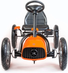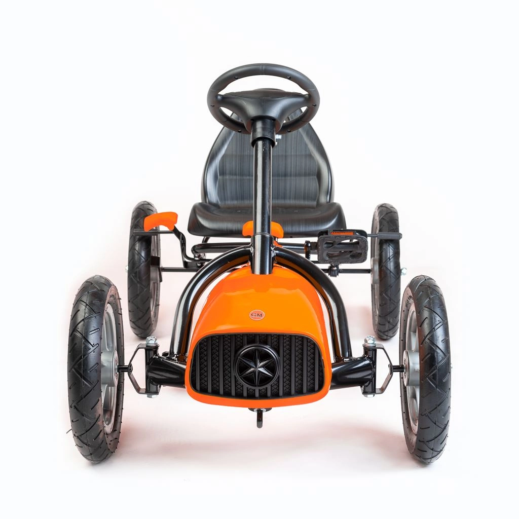 Bezpečnost je na prvním místě: ruční brzda na obou zadních kolech, kryt řetězu a stabilní rám z lehkého kovu splňují evropské bezpečnostní normy. Převodové nastavení umožňuje jízdu vpřed i vzad a volnoběh, takže je motokára vhodná jak pro začátečníky, tak pro malé závodníky.