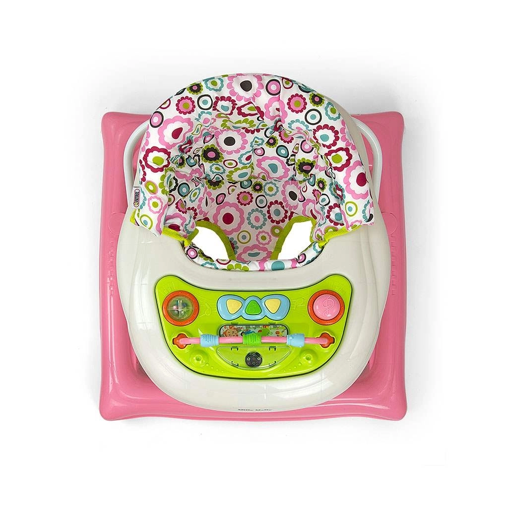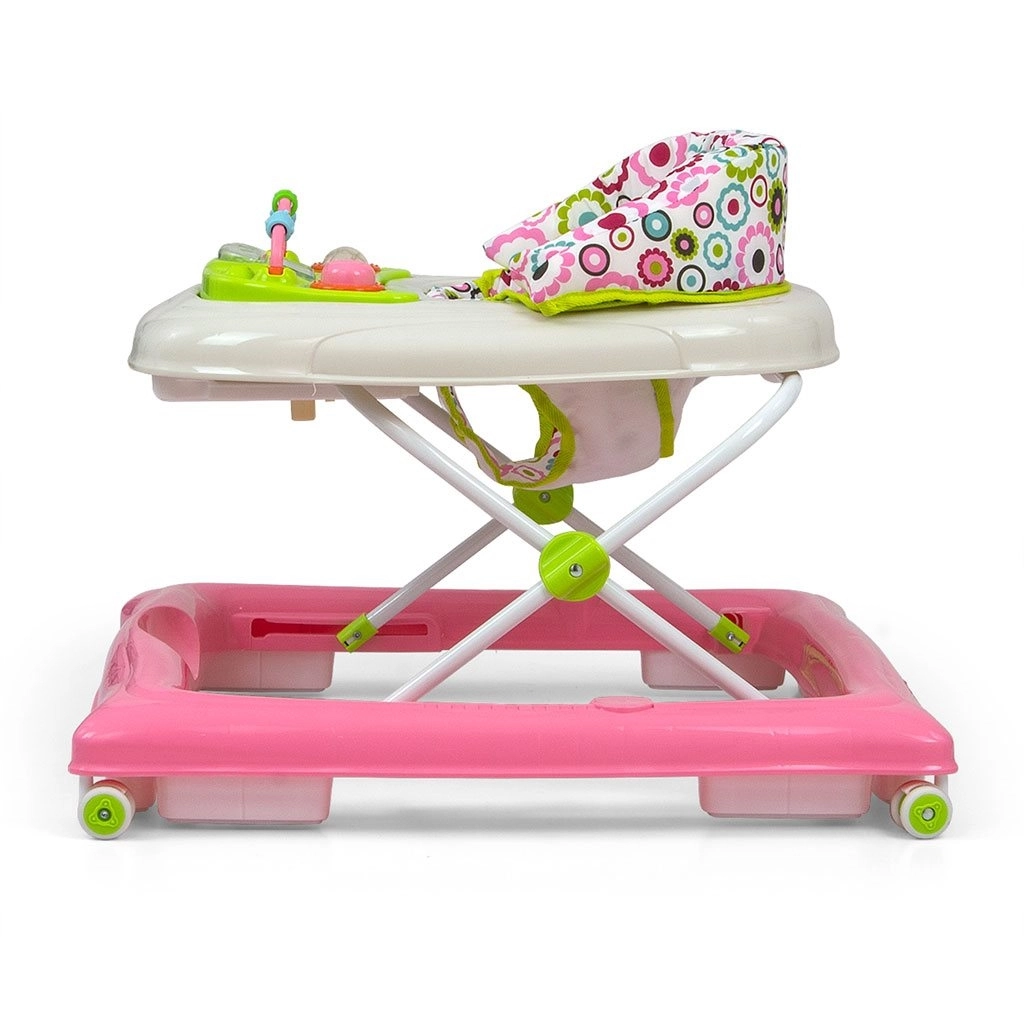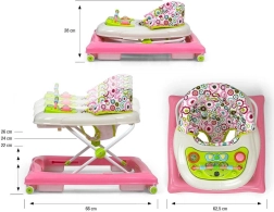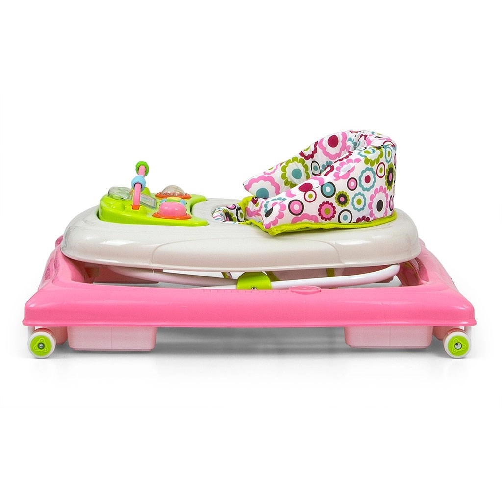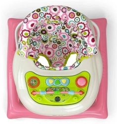 Interaktivní výukový panel se světýlky, melodiemi, pískátkem, chrastítkem a tlačítky rozvíjí smysly i motoriku. Panel lze snadno sejmout a používat samostatně jako hračku na cesty, zatímco tác poslouží jako hrací nebo snack stolek. Čtyři kvalitní otočná kolečka zajistí plynulý pohyb a osm gumových zarážek chrání před sjetím ze schodů.