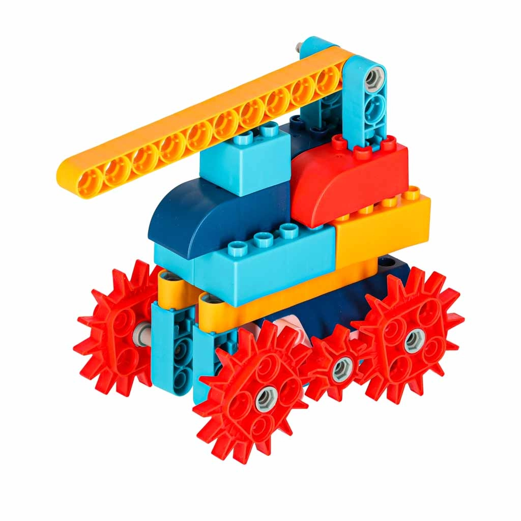 Tato kreativní stavebnice rozvíjí logické myšlení, zručnost a první technické dovednosti. Děti snadno propojí dílky zacvaknutím nebo je mohou spojovat pomocí šroubků a přiloženého šroubováku. Dobíjecí motorový blok rozpohybuje převody a kola, takže hotové modely skutečně jezdí či se otáčejí.
