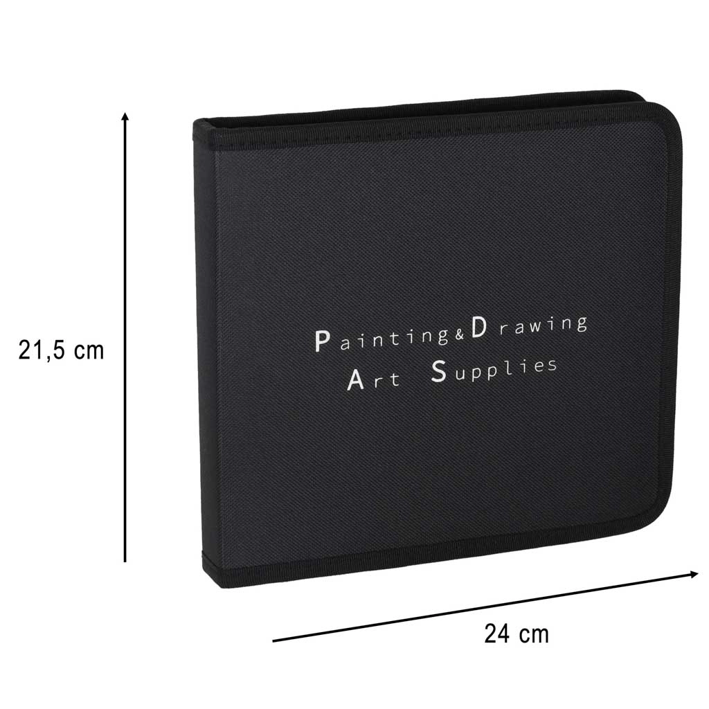 Odolné nylonové etui udrží vše přehledně na místě a skicák A5 s 20 listy je připravený na nápady kdykoli.