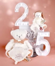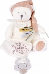 Tento něžný doudou medvídek je více než jen hračka – je to mazlíček, uklidňující dečka a praktický pomocník v jednom. Na konci dečky najdete úchyt na dudlík, díky kterému bude dudlík vždy po ruce a čistý. Jemná růžová čepička, bílý límeček a vyšívané detaily dodávají medvídkovi přátelský vzhled, který si děti okamžitě zamilují.