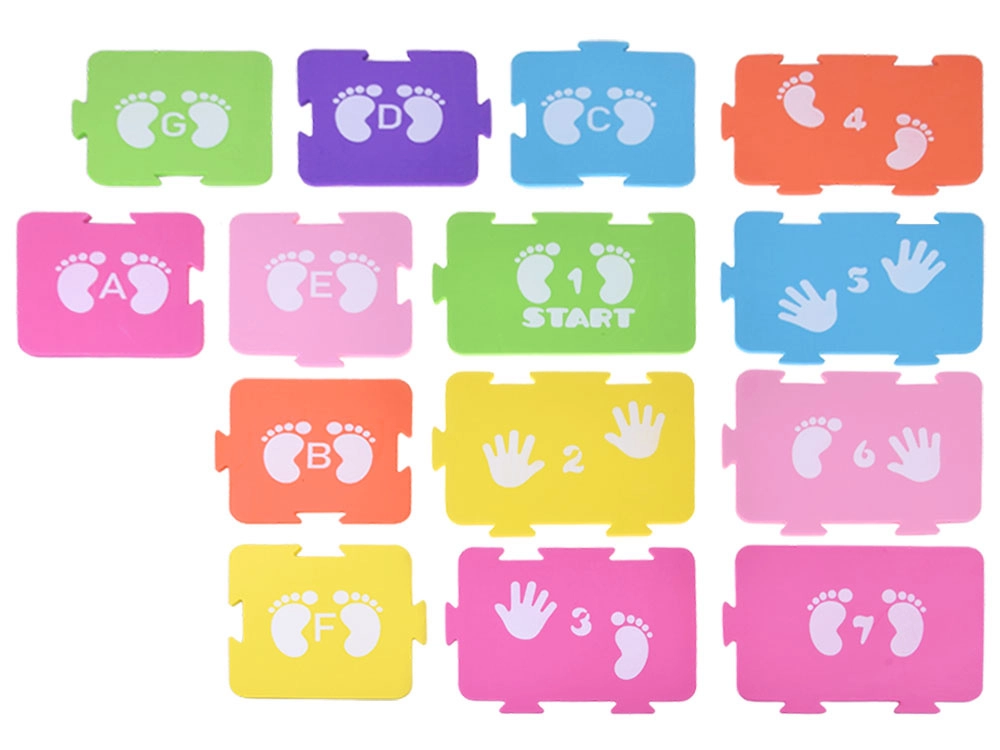 Zábavná a dynamičná pohybová hra kombinuje prvky klasů a Twisteru. Barevné pěnové puzzle s otisky rukou a nohou, písmeny a čísly tvoří bezpečnou herní dráhu doma i venku. Podporuje koordinační dovednosti, rovnováhu, spolupráci v týmu a přináší spoustu smíchu i zdravého pohybu.