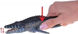 Každý dinosaurus umí jiný trik: pterodaktyl mává křídly, T-rex cvaká čelistmi, spinosaurus rozhýbe ocas i tlapy a kronosaurus otevírá tlamu a hýbe ploutvemi.