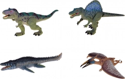 V balení najdete čtyři různé druhy: pterodaktyla (létá a pohybuje hlavou i zadními končetinami), T-rexe (hrozivě cvaká čelistmi a hýbe předními i zadními končetinami), spinosaura (pohybuje čelistí, končetinami i ocasem) a kronosaura (otevírá tlamu a hýbe ploutvemi). Každá figurka je vyrobena z kvalitního, odolného plastu, který vydrží časté hraní.
