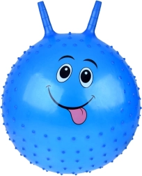 Usměvavý hop míč s rohatými úchyty promění každou chvíli v pohybovou zábavu. Elastický povrch tlumí dopady a drobné texturované výstupky zabraňují sklouznutí. Děti si zamilují veselé barvy a obličej, rodiče ocení, že skákání podporuje správné držení těla a zdravý pohyb.