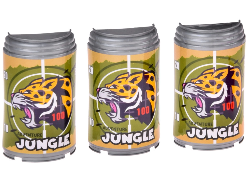 Tři lehké „plechovky“ s potiskem ADVENTURE JUNGLE a bodovými zónami dělají z tréninku trefy zábavnou hru pro jednoho i více hráčů.