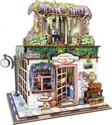 Objevte kouzlo miniatur s detailním modelem květnictví, který po sestavení rozzáří jemné LED osvětlení a vytvoří magickou atmosféru. Přes okna nahlédnete do bohatě vybaveného interiéru s policemi a kyticemi, střechu zdobí altánek s popínavými květy. Stabilní konstrukce z kvalitního dřeva potěší jako stylová dekorace do bytu i jako originální dárek.