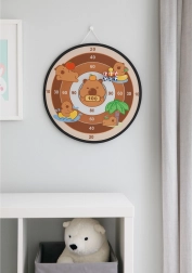 Míčky bezpečně přilnou k terči a jsou šetrné k nábytku i dětským rukám.
