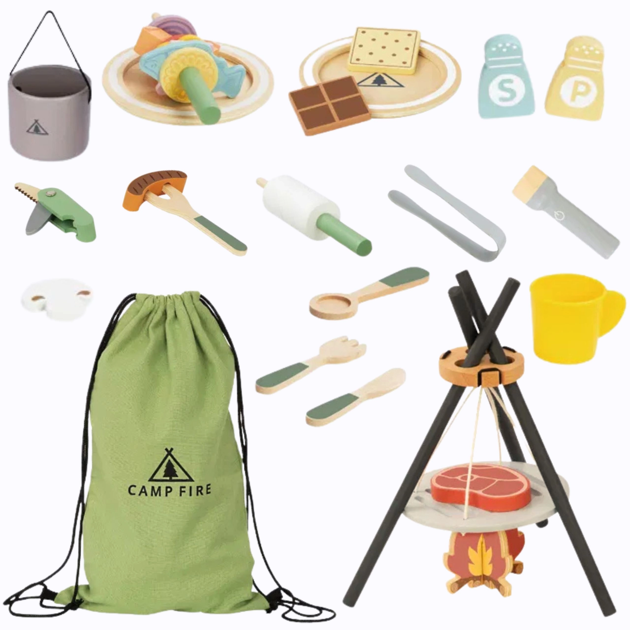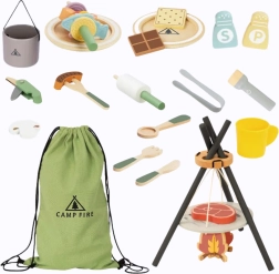 Tato originální sada přenese děti do světa kempování: stanů, táboráků a vaření s kamarády. Dřevěné dílky jsou příjemné na dotek a odolné, přitom bezpečné pro každodenní hraní. Ideální pro děti od 3 let, které rády napodobují dospělé a trénují sociální dovednosti.