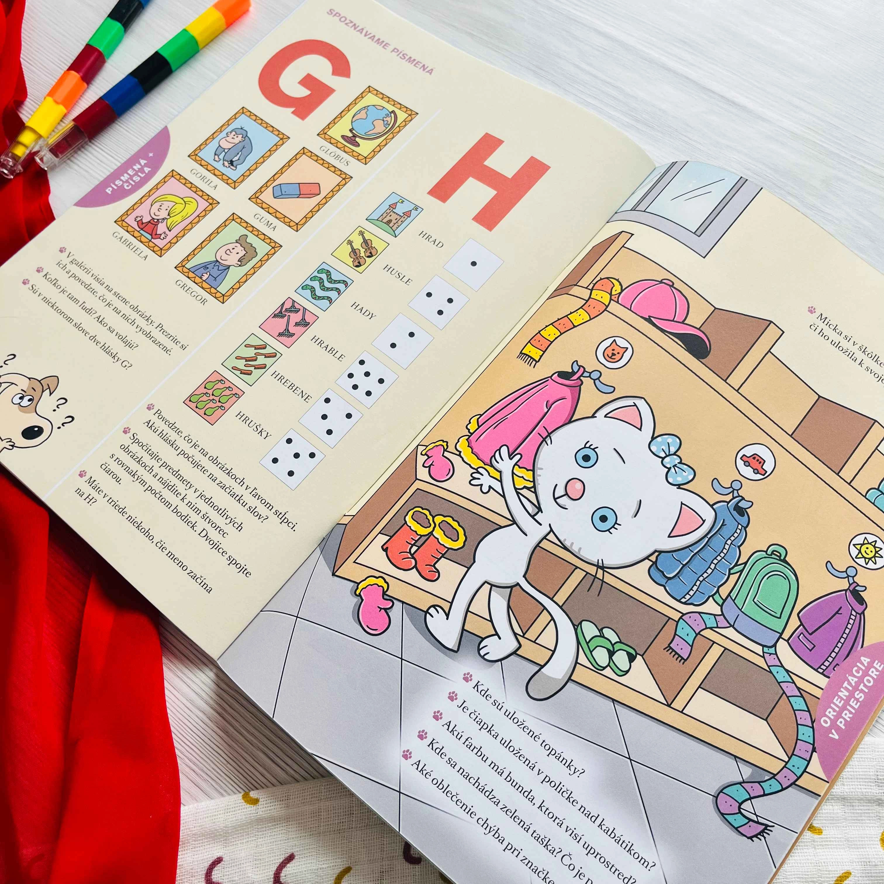 - Rozvoj řeči: popis obrázků, rozšiřování slovní zásoby, porozumění instrukcím.
