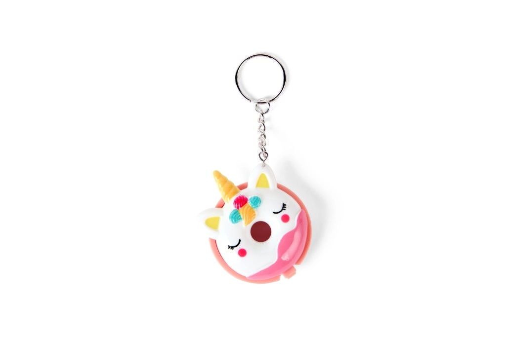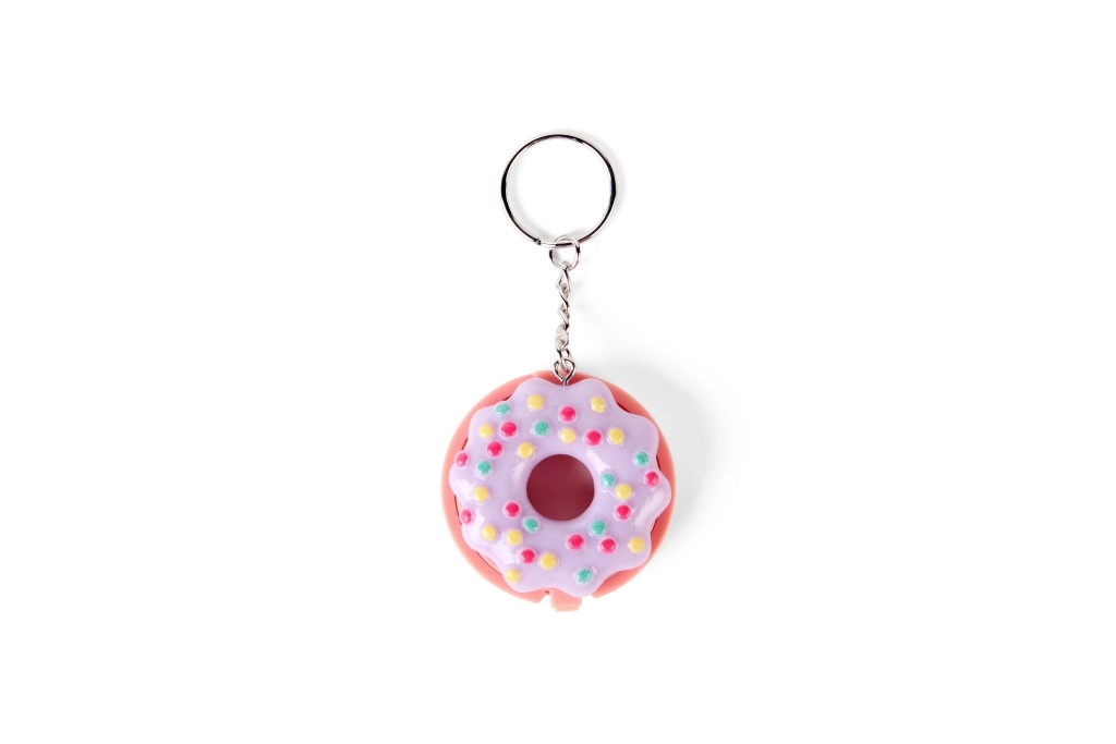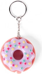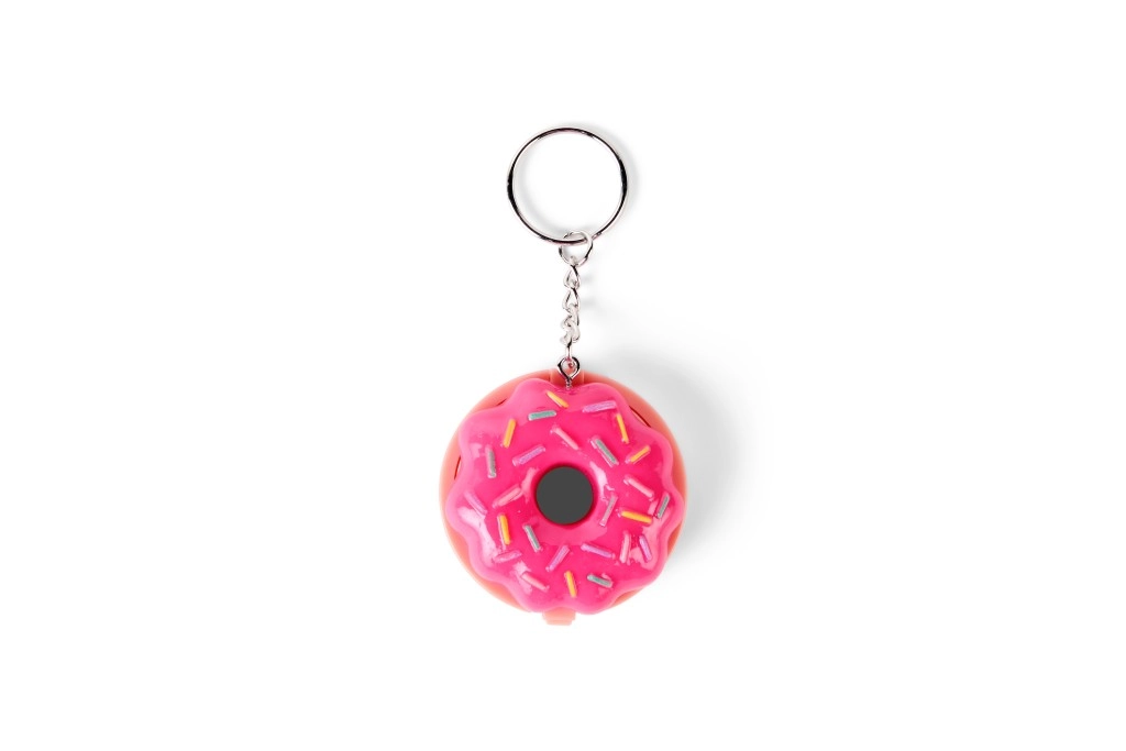 Kompaktní balení ve tvaru růžového donutu s barevnými „sprinkles“ a kovovou klíčenkou pro snadné připnutí na batoh či klíče.