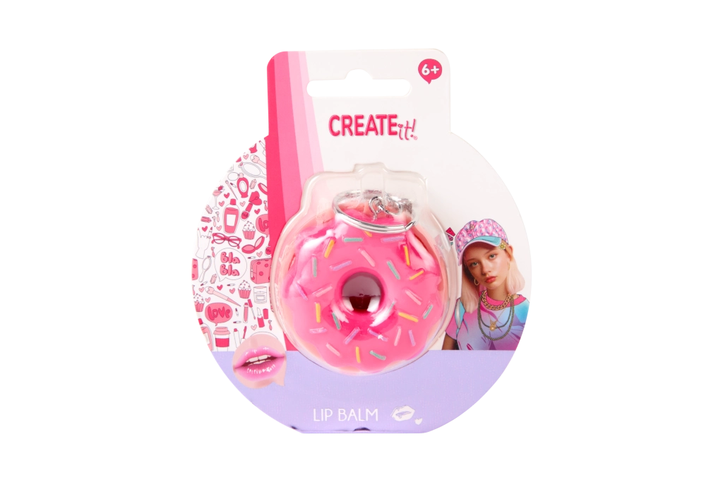 Hledáte zábavný a praktický doplněk? Balzám na rty ve tvaru donutu od CREATE IT! kombinuje hravý design s účinnou péčí. Krémová textura se snadno nanáší a zanechá rty hebké a vláčné. Růžový donut se sprinkly si zamilují děti od 6 let i milovnice stylových vychytávek.