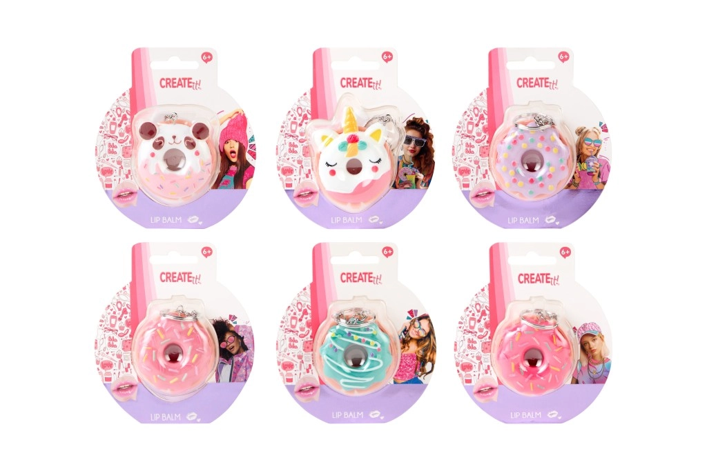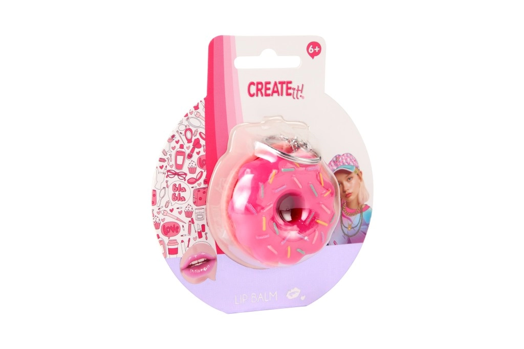 Roztomilý balzám na rty ve tvaru donutu s praktickým přívěskem od CREATE IT! potěší děti i teenagery. Hydratuje a zjemňuje rty, voní po jahodách a díky kompaktnímu balení se vejde do kapsy i kosmetické taštičky. Klíčenka umožní připevnění na batoh či klíče a mít péči o rty vždy po ruce.