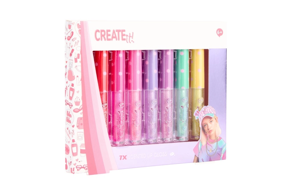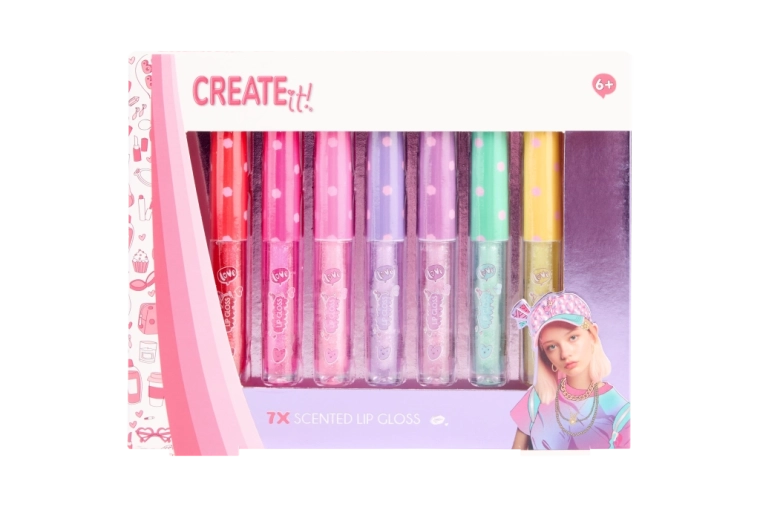 Objevte hravou sadu 7 voňavých lesků na rty CREATE IT!, která dodá vašim rtům zářivý lesk, jemné třpytky a příjemnou vůni. Každý tubus má jiný odstín a aroma, takže si snadno vyberete barvu pro každou náladu. Ideální jako dárek nebo pro sdílení s kamarádkami.