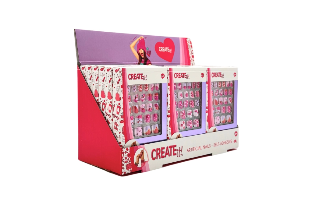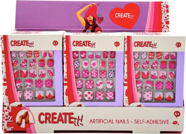 Proměň svůj look během pár minut. Samolepicí umělé nehty Create it! jsou navrženy pro pohodlné a bezpečné použití bez nepořádku a čekání. Různé velikosti zajišťují perfektní přizpůsobení tvaru tvých nehtů a osobní styl podtrhne moderní design.