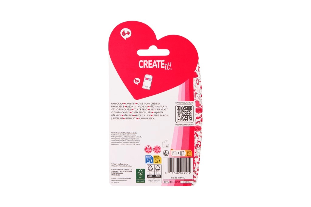 Veselé barvy, čisté ruce a nulová námaha. Kompaktní křídy na vlasy CREATE IT! jsou ukryty v praktickém plastovém aplikátoru s okénkem, který zaručí přesnou a rychlou aplikaci bez nepořádku. Stačí pár tahů a vaše vlasy získají hravé barevné prameny.