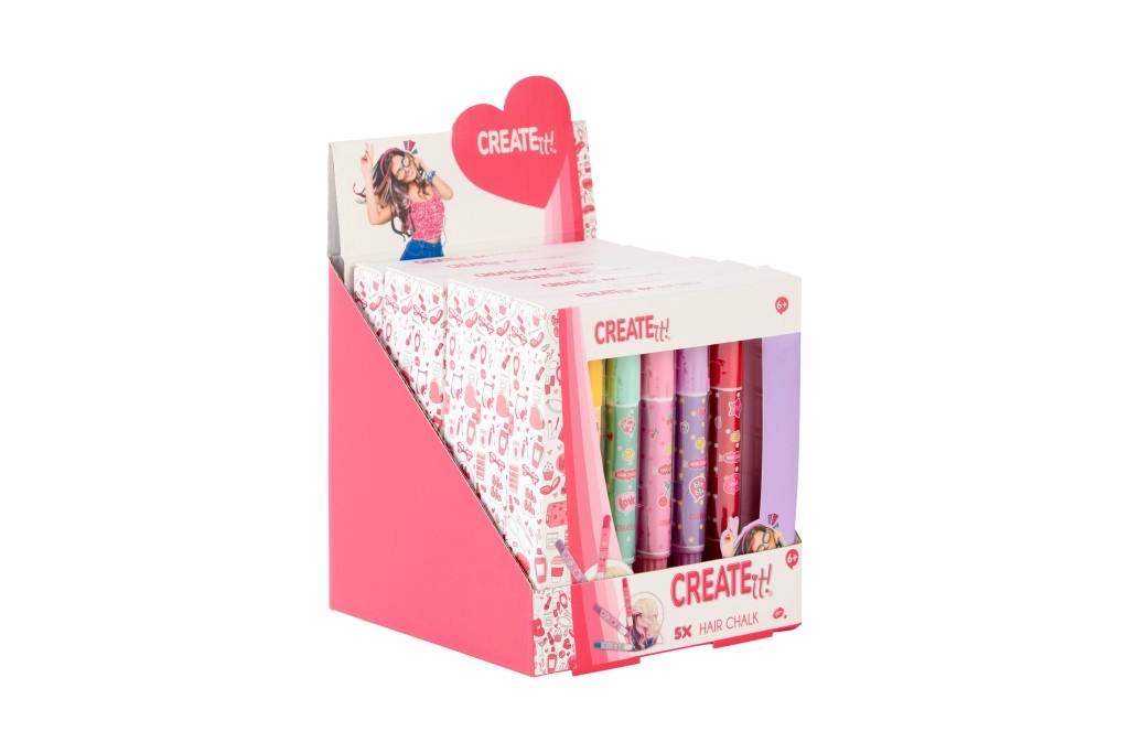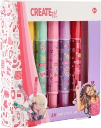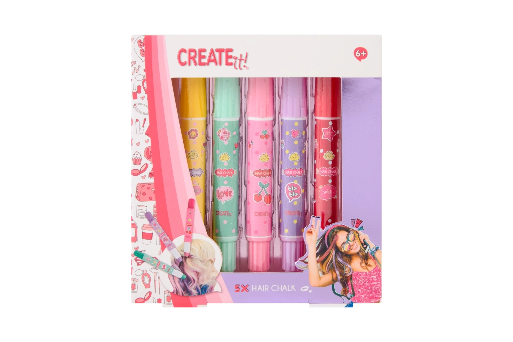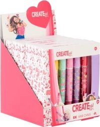 Objev snadný způsob, jak dodat účesu okamžitý barevný nádech. Křídy na vlasy v tužce CREATE IT! v balení pěti barev se jednoduše nanášejí přímo na prameny a vytvářejí hravé, výrazné proužky, které se snadno vymývají šamponem – ideální na párty, festivaly i každodenní experimentování.