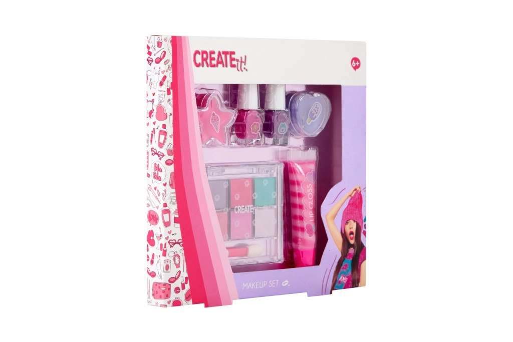 Objevte kouzlo barev se sadou líčení CREATE IT! Lila Turquoise. Děti si bezpečně vyzkouší líčení, sladí odstíny a vytvoří vlastní styl – od třpytivých víček po barevné nehty a hravé pramínky vlasů.