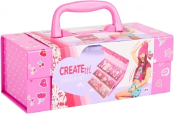 Stylový třípatrový kosmetický kufřík CREATE IT! potěší malé parádnice bohatou výbavou a přehledným uspořádáním. Nabízí 3 praktická patra s lakem na nehty, lesky na rty, očními stíny a tvářenkami, doplněné o aplikátory, pilník a samolepky na nehty. Díky magnetickému zavírání a pohodlnému madlu je ideální na cesty i domácí líčení.