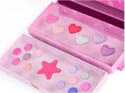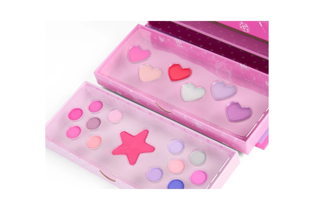 Veselý růžový vzhled s motivy srdíček a hvězdiček, přehledné výsuvné či vrstvené přihrádky a atraktivní prezentace obsahu.