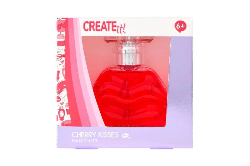 Objevte hravou a svěží vůni, která rozzáří každý den. Toaletní voda Create it! Cherry Kisses v originálním flakonu ve tvaru rtů přináší šťavnaté třešňové tóny s lehkým letním nádechem. Ideální pro mladé dívky i milovnice sladkých vůní, které chtějí vonět svěžě a optimisticky po celý den.
